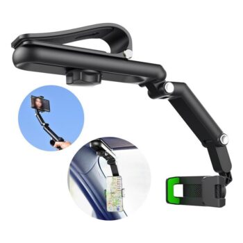 360° Adjustable Rearview Mirror Phone Mount – Universal Fit Car Phone Holder