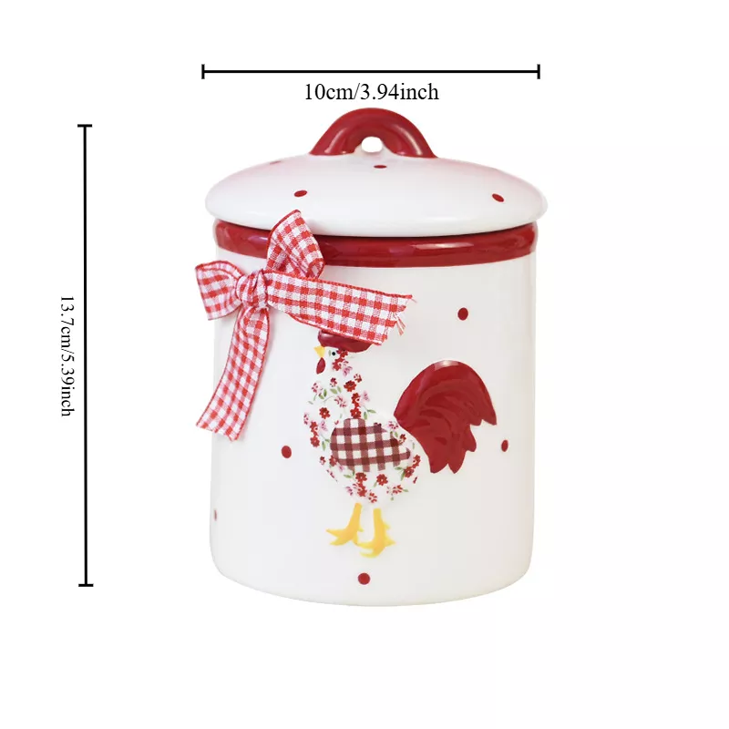 This jar is a delightful addition to my kitchen decor. The ceramic chicken design is charming, and the storage capacity is more than adequate.