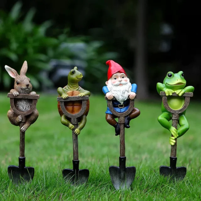 Aside from their adorable designs and high-quality craftsmanship, these statues stand out due to their unique shovel base. This clever feature not only adds stability but also integrates seamlessly into garden settings, making them look like they’re playfully emerging from the ground. The choice of animals and a gnome caters to various preferences, ensuring there’s a statue for every style.