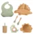 This set includes everything you need to serve your baby’s favorite meals in a fun, easy-to-use format. The plates, bowls, forks, spoons, and cup are made from a combination of natural bamboo and soft silicone, providing a sturdy yet gentle eating experience for little hands and mouths. The playful dinosaur design is sure to delight your child and encourage them to engage with their meals in a fun, interactive way.
