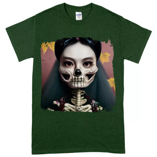 Cool Skeleton Heavy Cotton T-Shirt – Floral Tee Shirt – Halloween Print T-Shirt