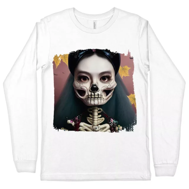 Cool Skeleton Long Sleeve T-Shirt – Floral T-Shirt – Halloween Print Long Sleeve Tee Shirt