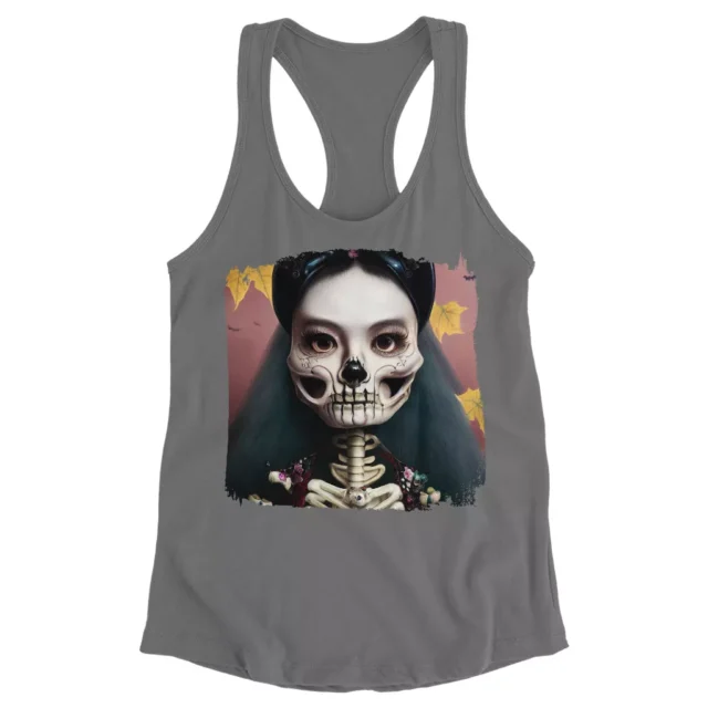 Cool Skeleton Racerback Tank – Floral Tank – Halloween Print Workout Tank