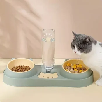 3-in-1 Cat Feeder with Automatic Water Dispenser and Double Bowls
