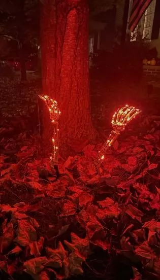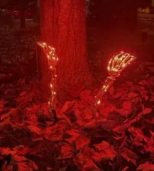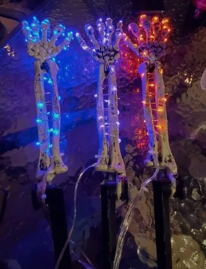 Transform your Halloween decorations with our spine-chilling Skeleton Arm Stakes, wrapped in 40 bright LED lights. These stakes are not just any ordinary Halloween adornment; they are designed to bring a ghoulish charm to your festive celebrations. Perfect for setting a hauntingly fun atmosphere at your Halloween party.