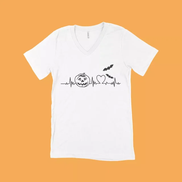 Looking for a relaxed and comfortable t-shirt? Look no further than Halloween Heartbeat Unisex Jersey V-Neck T-Shirt. Made from soft and lightweight fabric, Halloween Heartbeat Unisex Jersey V-Neck T-Shirt is perfect for everyday wear. And with a stylish v-neck design, it’s sure to turn heads too!