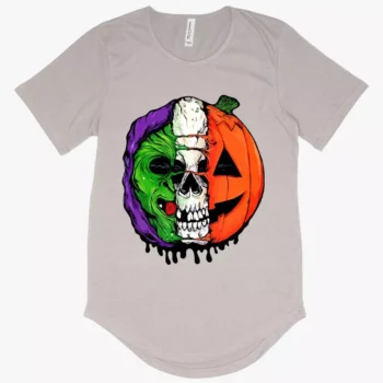 Skeleton Design Curved Hem T-Shirt – Cool Graphic T-Shirt – Best Design Curved Hem Tee