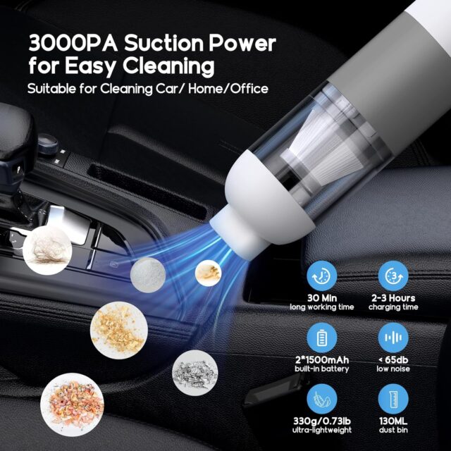 Perfect for daily use, this vacuum excels in cleaning car interiors, home spaces, and office environments. Its portable design makes it ideal for quick clean-ups, emergency spills, and maintaining cleanliness in high-traffic areas. Use it to reach tight spaces, clean up after pets, or refresh your vehicle’s interior before a ride.