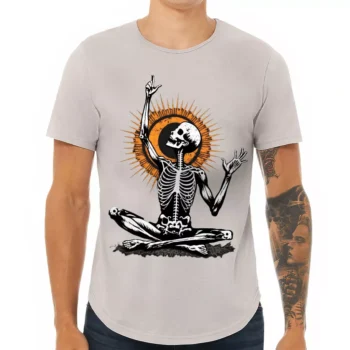 Skeleton Design Curved Hem T-Shirt – Cool Graphic T-Shirt – Best Design Curved Hem Tee