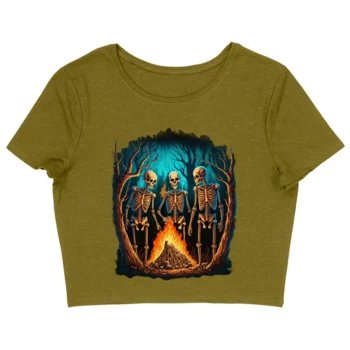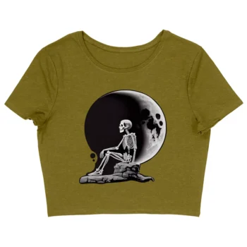 Skeleton Design Women’s Cropped T-Shirt – Moon Crop Top – Themed Cropped Tee