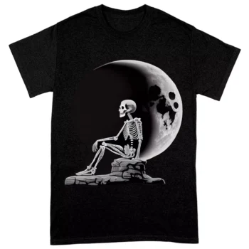 Skeleton Design Heavy Cotton T-Shirt – Moon Tee Shirt – Themed T-Shirt