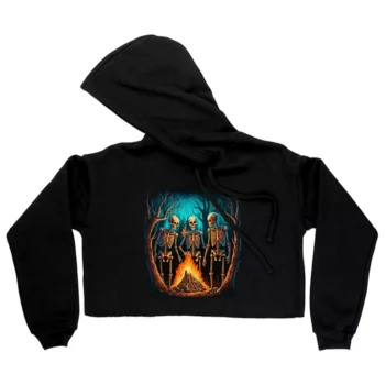 Skeleton Women’s Cropped Hoodie – Creepy Cropped Hoodie – Printed Hooded Sweatshirt