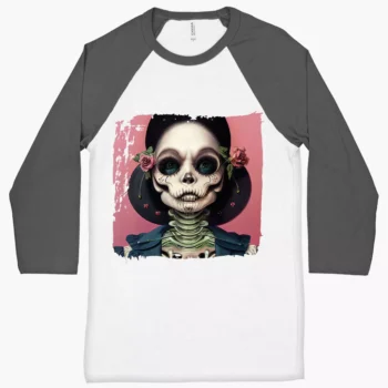 3D Skull Baseball T-Shirt – Skeleton T-Shirt – Halloween Themed Tee Shirt