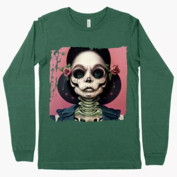 3D Skull Long Sleeve T-Shirt – Skeleton T-Shirt – Halloween Themed Long Sleeve Tee Shirt