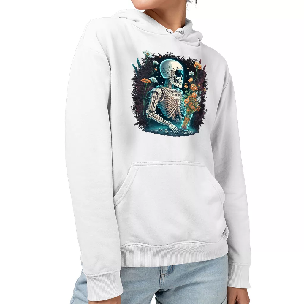 Skeleton Astronaut Sponge Fleece Hoodie – Flower Hoodie – Space Design Hooded Sweatshirt