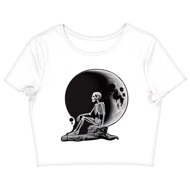 Skeleton Design Women’s Cropped T-Shirt is no ordinary piece of clothing. Its form-fitting silhouette and soft fit and feel provide a retail fit for clothing that’s true to size.