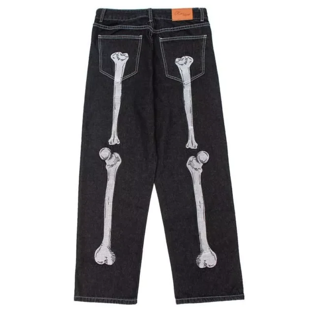 • Striking Skeleton Pattern: With an intricate embroidery of bones, these jeans embody the essence of hip-hop culture and punk influence.