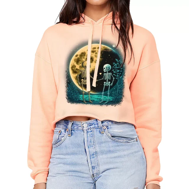 Skeleton Graphic Women’s Cropped Hoodie is proudly made with 7x less water than average manufacturers, in recycle-friendly facilities that also guarantee zero sweatshop conditions. Moon Print is designed and printed in California.
