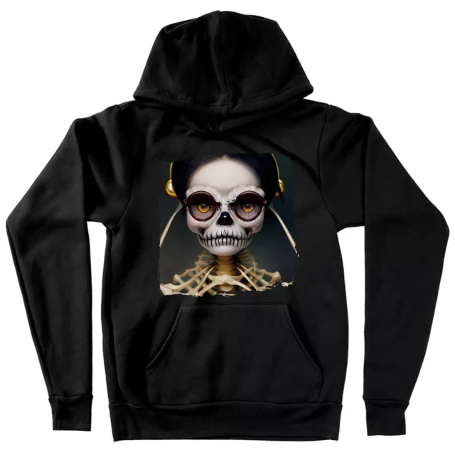 Skeleton Print Hooded Sweatshirt – Halloween Themed Hoodie – Creepy Girl Hoodie