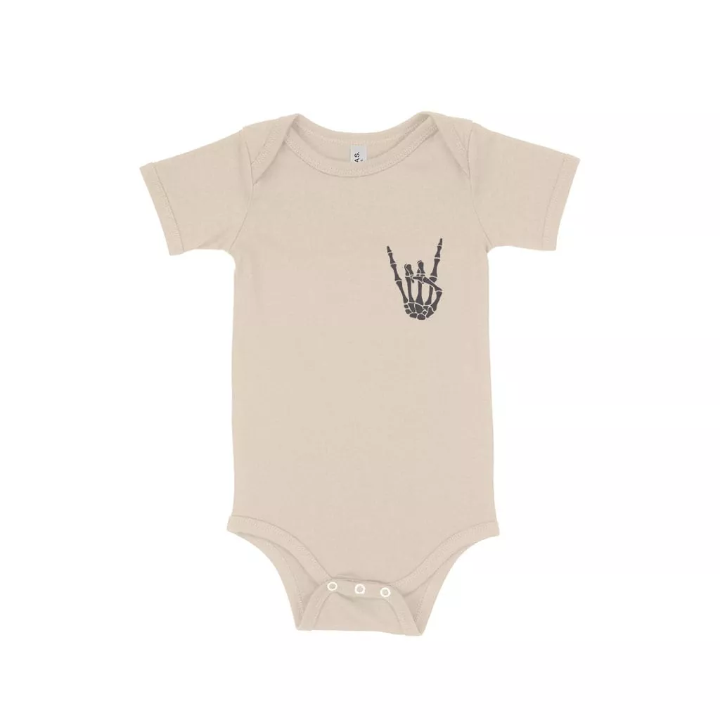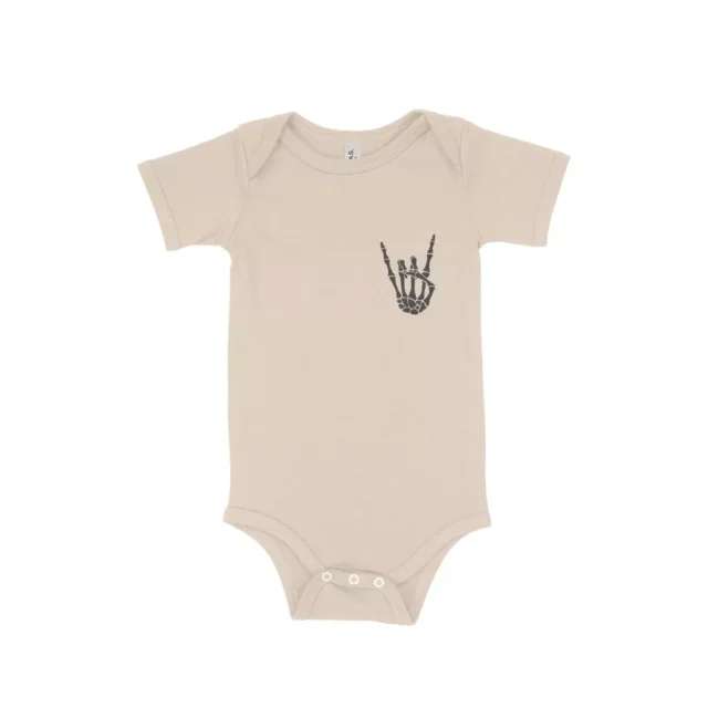 Looking for a cute and cozy onesie for your little one? Check out Skeleton Sign of the Horns Baby Jersey One-Piece! Made from soft and stretchy jersey material, Skeleton Sign of the Horns Baby Jersey One-Piece is perfect for keeping your baby comfortable all day long. It features short sleeves and snaps at the crotch for easy changing.