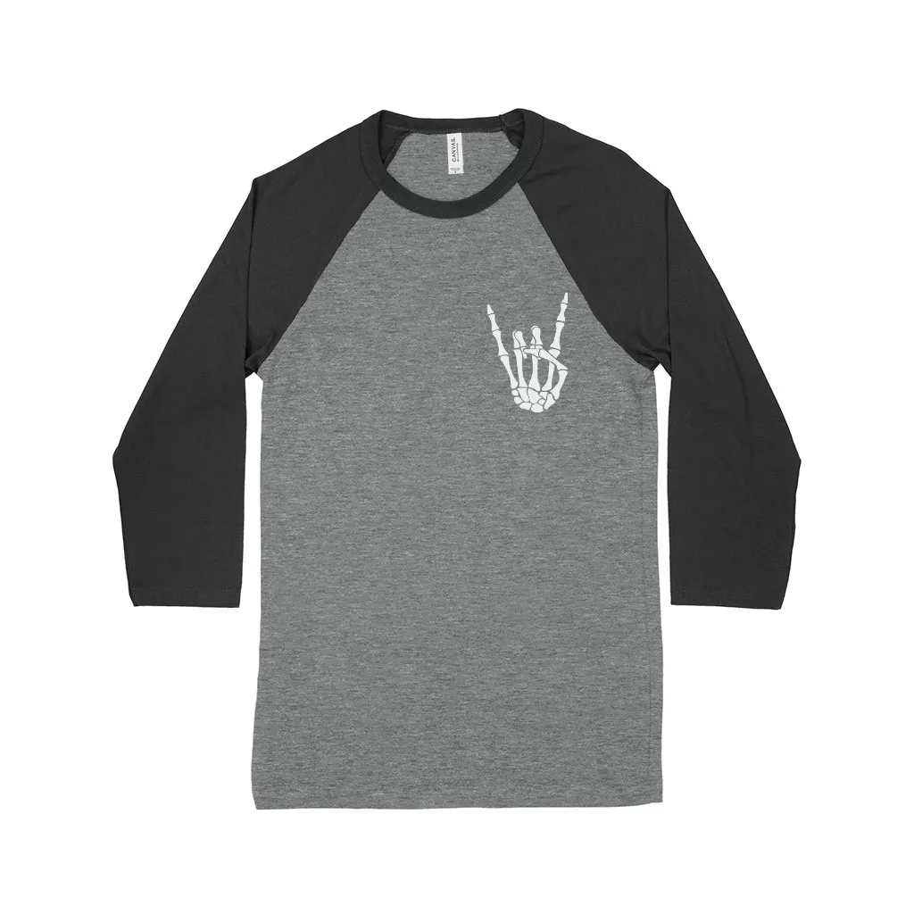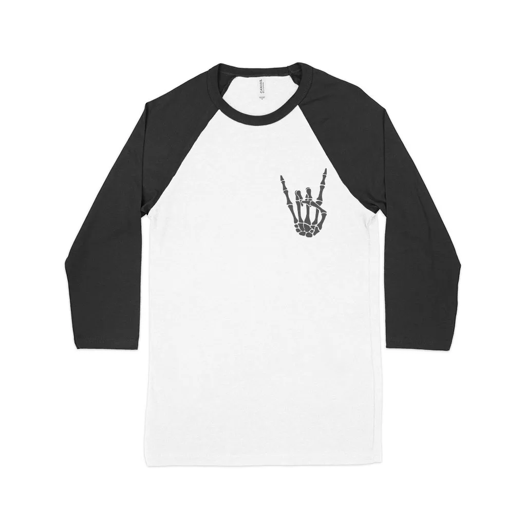 Skeleton Sign of the Horns Unisex 3/4 Sleeve Baseball T-Shirt