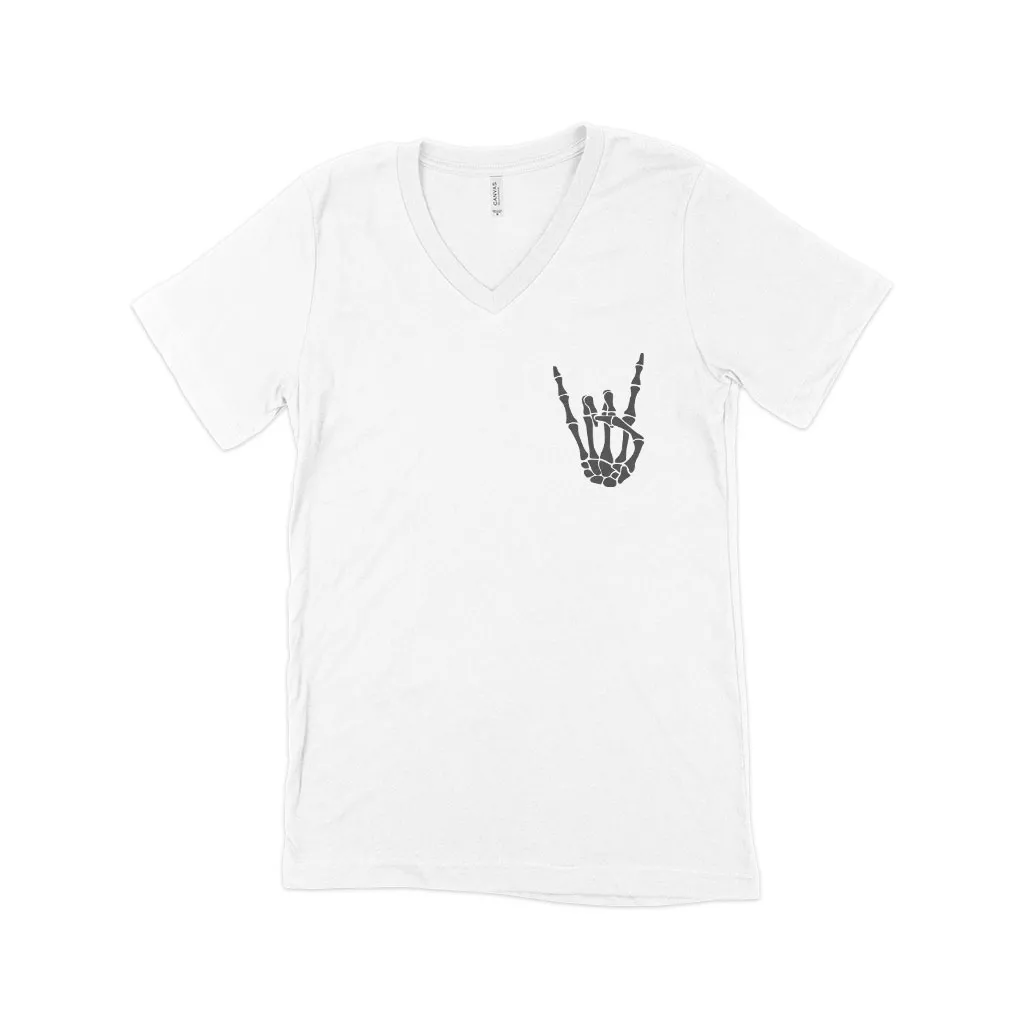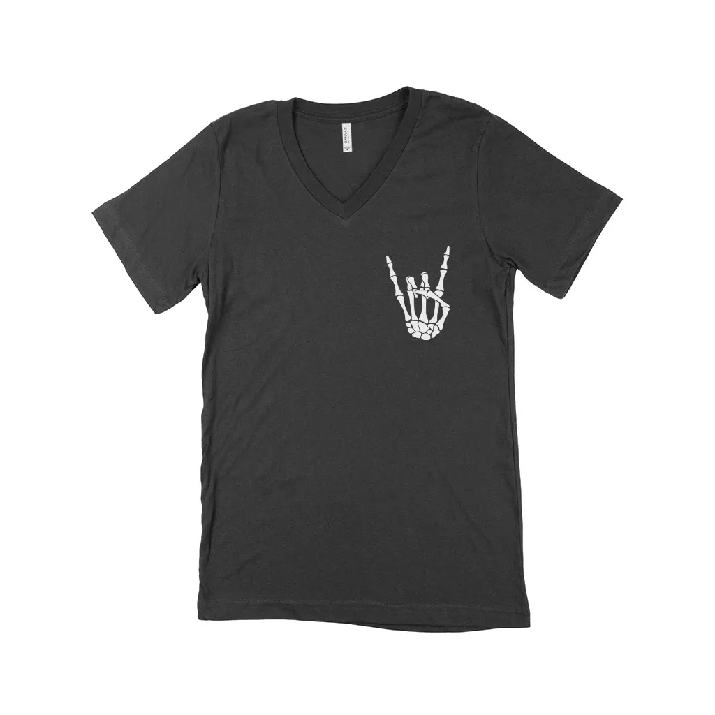 Skeleton Sign of the Horns Unisex Jersey V-Neck T-Shirt