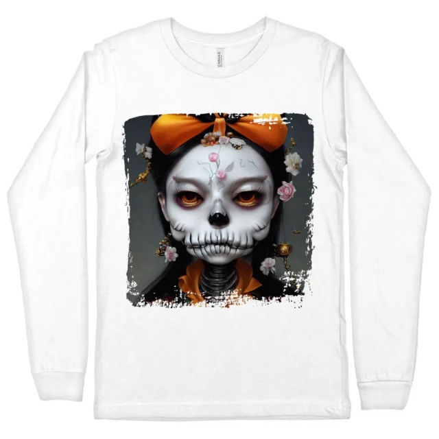 Skull Print Long Sleeve T-Shirt – Novelty Skeleton T-Shirt – Creepy Girl Long Sleeve Tee Shirt
