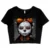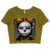 Skull Print Women’s Cropped T-Shirt – Novelty Skeleton Crop Top – Creepy Girl Crop Tee Shirt
