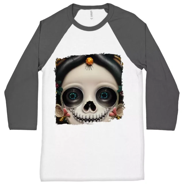 Sugar Skull Baseball T-Shirt – Floral T-Shirt – Skeleton Girl Tee Shirt