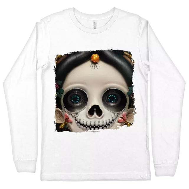 Sugar Skull Long Sleeve T-Shirt – Floral T-Shirt – Skeleton Girl Long Sleeve Tee Shirt